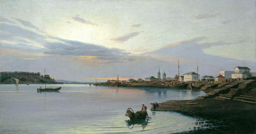 Николай Флорианович Добровольский (1837-1900). Набережная Ангары в Иркутске. 1886 год. Холст, масло. Иркутский художественный музей.