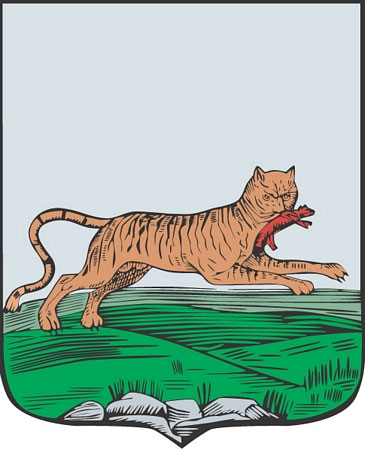 Герб Иркутска, принятый 26 октября 1790 года. «В серебряном поле бегущий тигр, а во рту у него соболь».