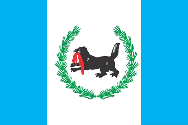Флаг Иркутской области был принят 16 июля 1997 года. В центре изображение бегущего бабра, держащего в пасти червленого (красного) соболя, в обрамлении стилизованных зеленых ветвей кедра.