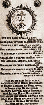 Надгробная плита над могилой Искры и Кочубея в Киево-Печерской лавре.