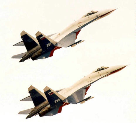 Фронтовой истребитель Су-27. Фронтовой истребитель четвертого поколения. Работы по его созданию в СССР начались в 1969. Пришедший на смену истребителям МиГ-21 и МиГ-23, истребитель СУ-27 максимально приспособлен для воздушного боя на малой и средней дальностях.