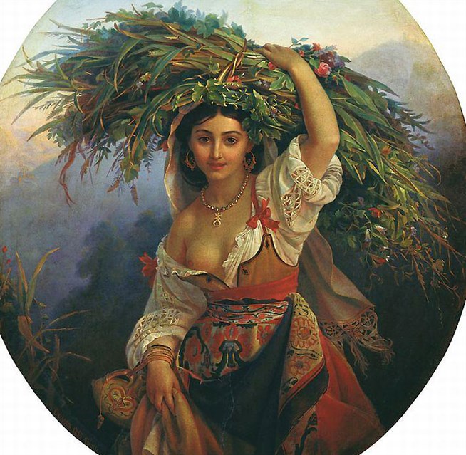 Пимен Никитич Орлов (1812-1865). Итальянка с цветами. Холст, масло. Иркутский художественный музей.