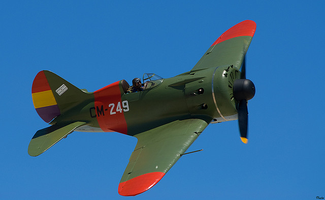 Самый массовый серийный истребитель военных лет И-16 на демонстрации исторических самолетов в июле 2008 года. Конструктор Н.Н. Поликарпов, 1935 год. Фото