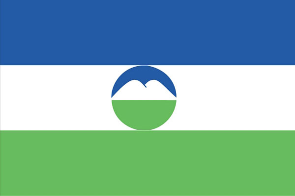 Флаг Кабардино-Балкарской Республики был принят 21 июля 1994 года. В центре полотнища круг, разделенный на сине-голубое и зеленое поля, посередине белое изображение Эльбруса.