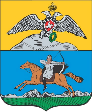 Герб Кавказской области Российской империи был утвержден 23 октября 1828 года. Разделенный на две части щит представляет, в верхней своей половине, российского геральдического орла в золотом поле, сидящего на вершине горы Кавказа. Он держит с одной стороны лавровый венок. Под ногами его лежат расторженные цепи Прометея. В нижней части щита, в голубом поле, изображен кавказский горец, скачущий на коне по зеленой степи. Убегая от преследования, он стреляет из лука. В дали видны снеговые верхи Кавказских гор. Кавказская область была образована в 1822 году, преобразована в Ставропольскую губернию в 1847 году.