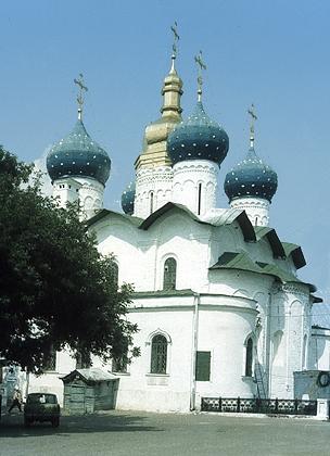 Благовещенский собор Казанского кремля был возведен в 1556 году псковскими мастерами Посником Яковлевым и Иваном Ширяем. Более поздние переделки изменили первоначальный облик собора и лишь три алтарные апсиды с характерной псковской узорчатой каймой сохраняют следы его прежнго облика.