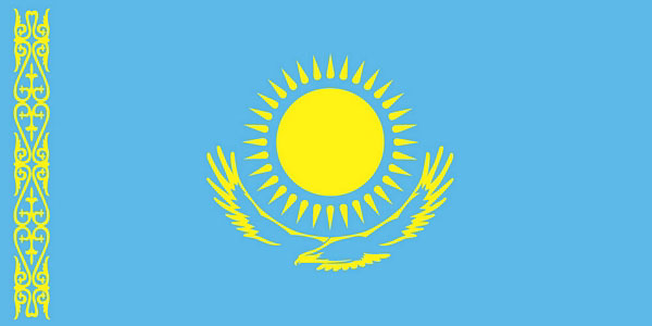Флаг Казахстана с 24 января 1996 года.В центре флага изображено солнце с лучами, под которым — парящий орёл. У древка — вертикальная полоса с национальным орнаментом.