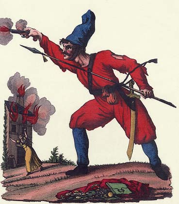 Донской казак. Литография (раскрашенная гравюра). Первая четверть 19 века. Государственный исторический музей. Москва.
