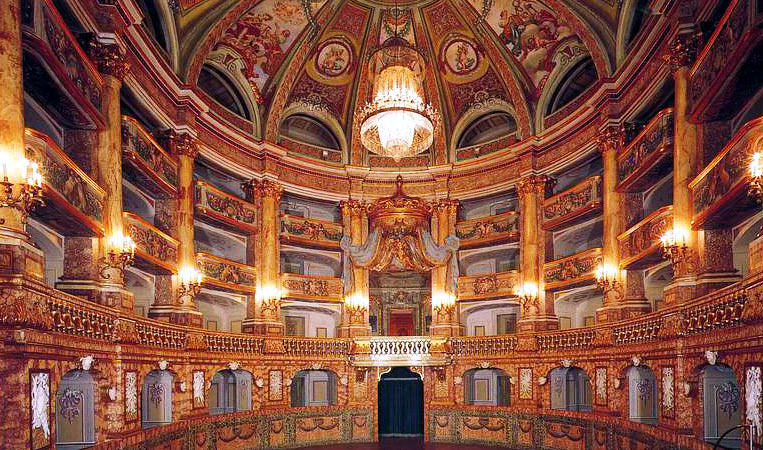 Театр был включен в проект по исключительной просьбе короля Фердинанда IV, который очень любил театральные постановки. Театр имеет форму подковы, окруженной 42 богато декорированными ложами.