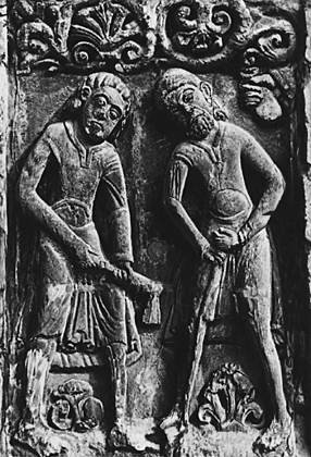 «Каин и Авель». Фрагмент рельефа на фасаде кафедрального собора в Линкольне (Англия). Около 1145.