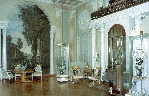 Калуга. Усадьба Золотарева. Богато отделанный зал украшен стенной живописью в стиле французского мастера Юбера Робера.