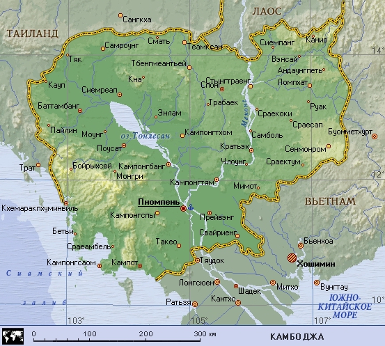 Камбоджа (географическая карта).
