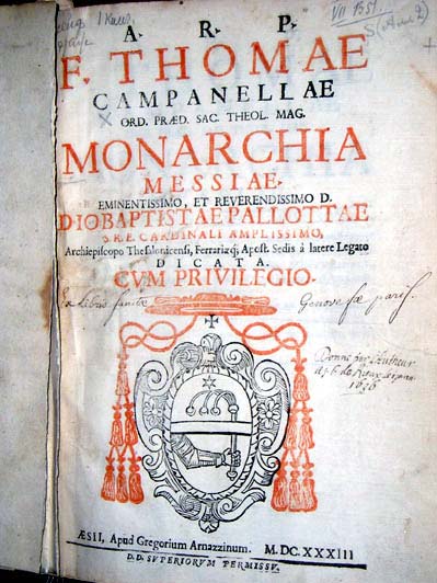 Прижизненное издание «Монархия Мессии» Томмазо Кампанеллы. 1633 г. Из фондов Государственной общественно-политической библиотеки.