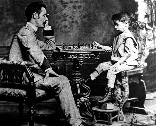 Четырехлетний Хосе Рауль играет с отцом. 1893 г.