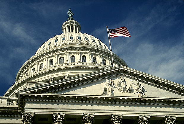 Капитолий. Восточный фронтон здания с национальным флагом.