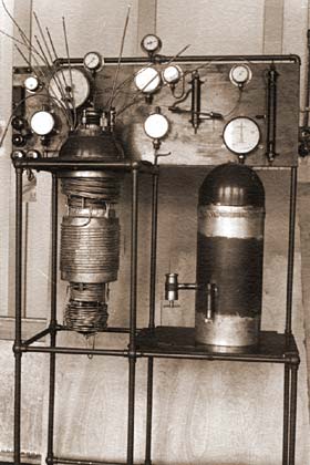 Ожижительная машина для адиабатического охлаждения гелия, изобретенная П. Л. Капицей. 1929 год.