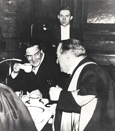 П. Л. Капица и С. Болдуин, премьер-министр Великобритании, канцлер Кембриджского университета во время чаепития на открытии Мондовской лаборатории. 1933 год.
