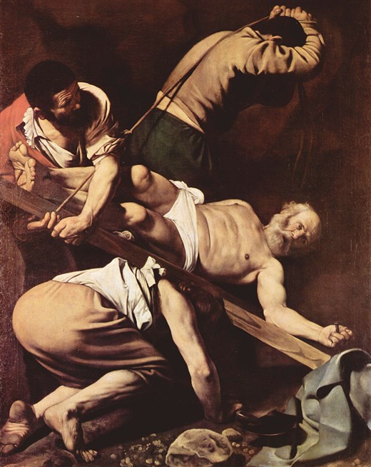 М. Караваджо. Смерть апостола Петра. 1600-1601 годы. Холст, масло. Капелла Черази, церковь Санта-Мария-дель-Пополо, Рим.