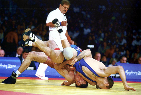 Олимпийский чемпион по греко-римской борьбе (категория до 76 кг) Мурат Карданов в финальном поединке.