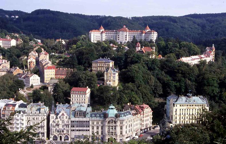 Карловы Вары. Панорама города, на заднем плане: отель «Империал».