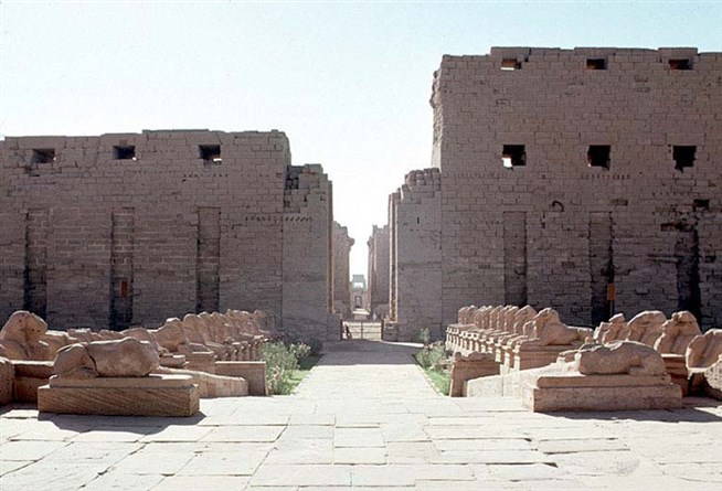 Аллея сфинксов. Храмы Амона-Ра в Карнаке и Луксоре соединены между собой дорогой, охраняемой сфинксами. 15-13 вв. до н.э.