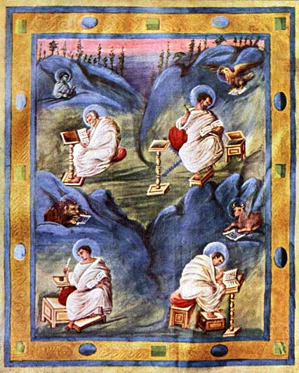Четыре евангелиста. Около 820 года. Пергамент. Ризница собора в Ахене.