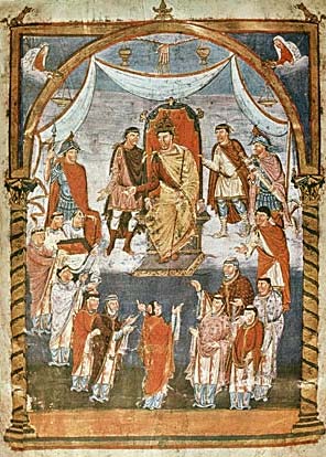 Миниатюра из Библии Карла Лысого. Библия изготовлена в мастерских, основанных Карлом Великим.