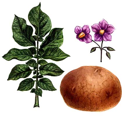 Картофель (цветки, клубень и лист)