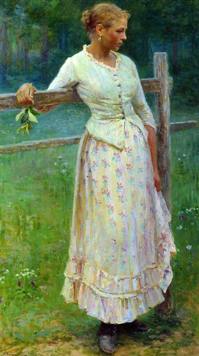 Н.А. Касаткин. Девушка у изгороди. 1893 год. Холст, масло. Третьяковская галерея.