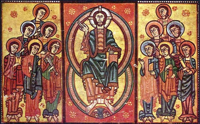 Христос и апостолы. Середина 12 века. Темпера по дереву. Работа мастера каталонской школы. Художественный музей Каталонии в Барселоне.