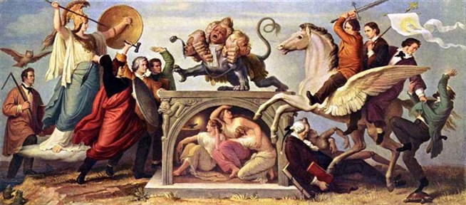 Вильгельм фон Каульбах. Сражение с Химерой. Эскиз росписи Новой Пинакотеки в Мюнхене. 1850 год. Баварское государственное собрание картин в Мюнхене.
