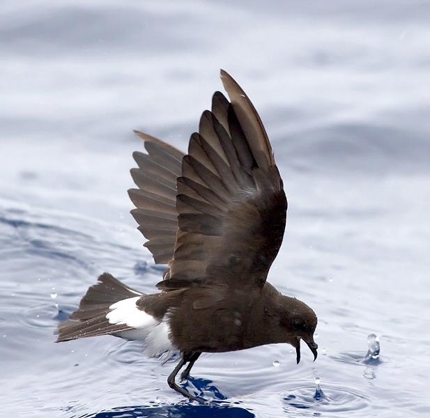 Качурка Вильсона (Oceanites oceanicus) имеет темное оперение, только основание хвоста и гузка белые.