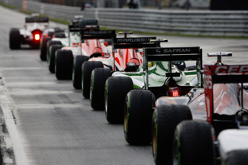Очередь на квалификационный заезд. Гран-при Малайзии. 2014 год. Фото: Charles Coates/LAT Photographic, caterhamf1, flickr