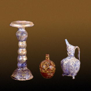 Роспись люстром, тонкая отделка бирюзовой глазурью выделяла сосуды из персидского города Кашана.