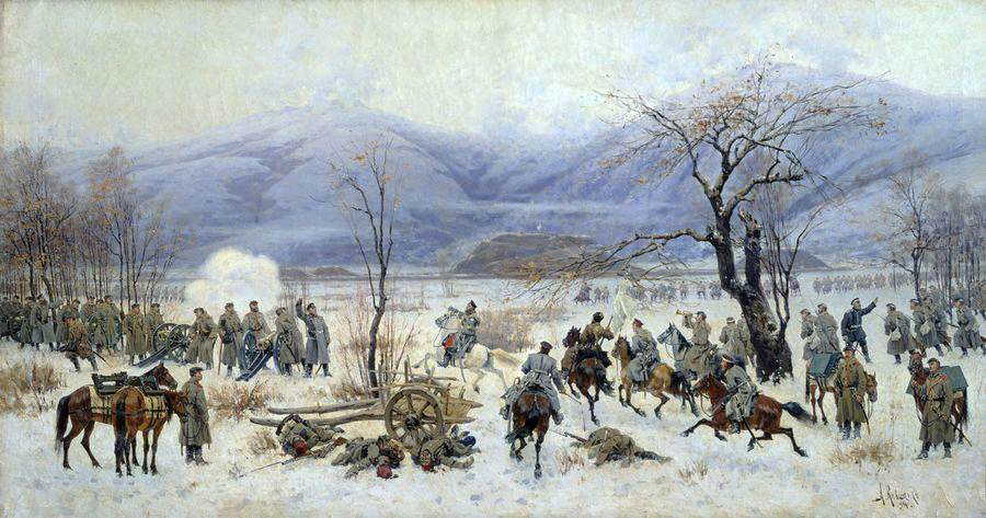 А.Д. Кившенко. Сражение у Шипки-Шейново 28 декабря 1877 года. 1894 год. Холст, масло.