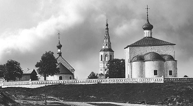 Кидекша. Резиденция Юрия Долгорукого. Общий вид архитектурного ансамбля 12-18 веков.