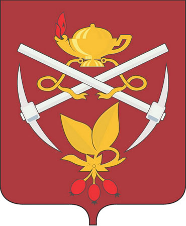 Герб Кизела был прнят в 2005 году. На щите пурпурного цвета две серебряные кирки, сопровождаемые сверху золотой старинной шахтерской лампой, а снизу — золотой веточкой кизила. Цвет поля и ветвь кизила указывают на имя города. Кирки и лампа показывают, что угледобыча послужила развитию города и региона, а лампа олицетворяет надежду на процветание в будущем.