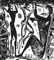 «Ослепление Полифема». Фрагмент росписи протоаттической амфоры из Элевсина. 670-650 до н. э. Музей. Элевсин.