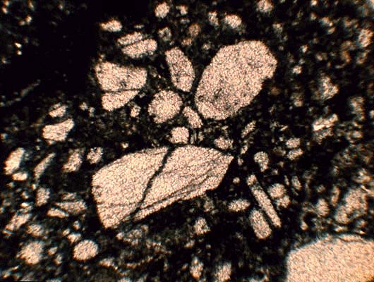 Кимберлит. Снимок под поляризационным микроскопом (увеличено в 40 раз) без анализатора.