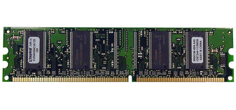 Модуль синхронной динамической памяти с удвоенной пропускной способностью 128 MB DDR SDRAM производства фирмы Kingston Technology (DIMM 184 pin).