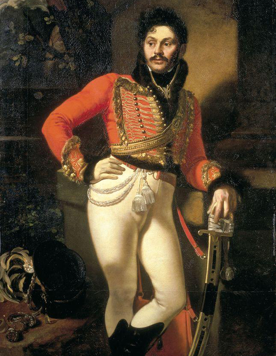 О.А. Кипренский. Портрет полковника Евграфа Владимировича Давыдова в мундире лейб-гвардии гусарского полка. 1809 год. Холст, масло. Русский музей, Петербург.