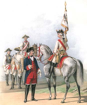 Кирасирский Его Императорского Высочества Государя Великого князя Петра Федоровича полк. 1745-1761 гг. Гравюра неизвестного художника первой четверти 18 в. ГИМ.
