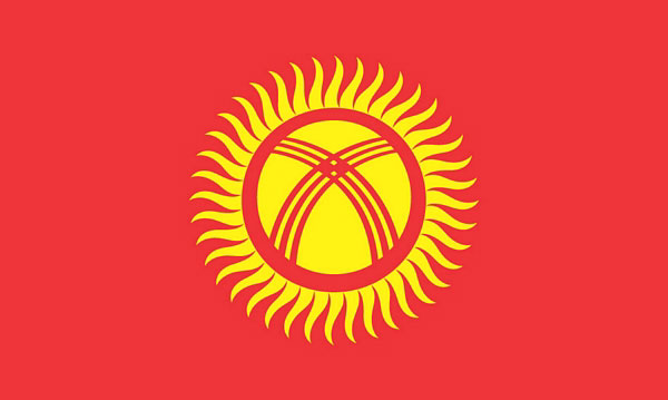 Флаг Киргизии с 3 марта 1992 года. В центре флага размещен круглый солнечный диск с сорока лучами золотистого цвета. Внутри солнечного диска красным цветом изображен тюндюк киргызской юрты.