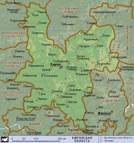 Кировская область (географическая карта)