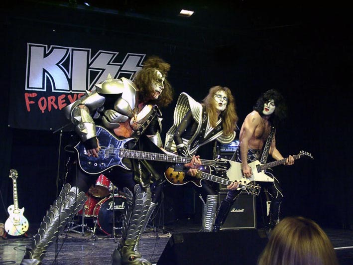 Группа «Кисс» во время выступления (слева направо: Джин Симмонс, Эйс Фрели, Пол Стенли).