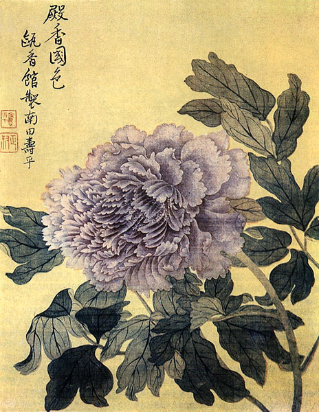 Китай. Юнь Шоупин. Пион. Альбомный лист. Тушь, краски, бумага. 17 в. Музей искусства народов Востока, Москва. Китайские мастера пытались воплотить поэтическую красоту природы, представления о совершенной гармонии и величии Вселенной. Характерную черту китайской живописи составляет стремление через частное и единичное постичь всеобщие законы бытия и взаимосвязь явлений. Китайская живопись в основном представлена вертикальными или горизонтальными свитками по шёлку или бумаге. Картины обычно писали тушью или минеральными красками, сопровождая их каллиграфическими надписями. Широкое распространение получил жанр «цветы-птицы». Особое место в изображениях растений занимали орхидея, дикая слива мейхуа, бамбук и хризантемы, сопровождаемые поэтичными каллиграфическими надписями. Настоящим символом китайской живописи стала мейхуа, розово-белые цветы которой раскрываются, когда повсюду ещё лежит снег.