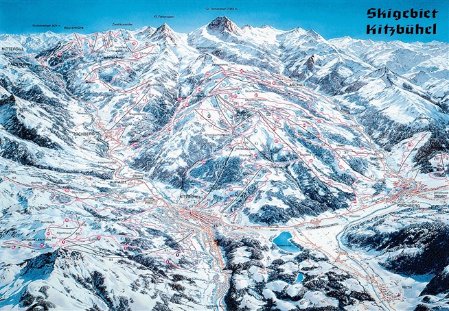 Схема горнолыжных трасс курорта Китцбюэль в Австрии.