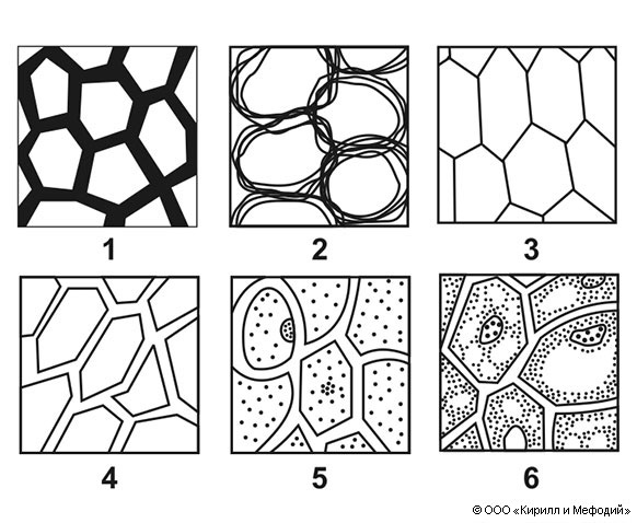 Развитие представлений о клеточном строении растений: 1 — клетки-пустоты в непрерывном растительном веществе (Р. Гук, 1665): 2 — стенки клеток или пузырьков построены из переплетённых волокон, образующих ткань (Н. Грю, 1682); 3 — клетки-камеры, имеющие общую стенку (начало 19 в.); 4 — каждая клетка имеет собственную оболочку (Г. Линк, И. Мольденхавер, 1812); 5 — образователь клетки — ядро («цитобласт»), исчезающее в процессе клеткообразования (М. Шлейден, 1838): 6 — клетки, состоящие из протоплазмы и ядра (Х. Моль, 1844).