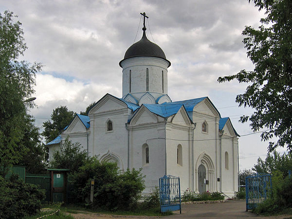 Клин. Церковь Успения Богородицы. 16 в. Бывший собор упраздненного в 1761 монастыря. Четырехстолпная, одноглавая, с перспективными порталами и уникальным щипцовым завершением прясел стен. Расположена на холме в речной излучине. Фото А. Карпова.