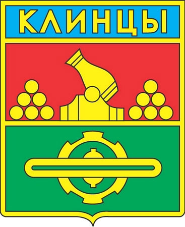 Герб города Клинцы был утвержден 12 декабря 1985 года. В верхней части брянский герб (в красном поле золотая мортира с ядрами возле нее), в нижней в зеленом поле — шестерня, ткацкий челнок и бобина с нитками (отрасли промышленной специализации города).
